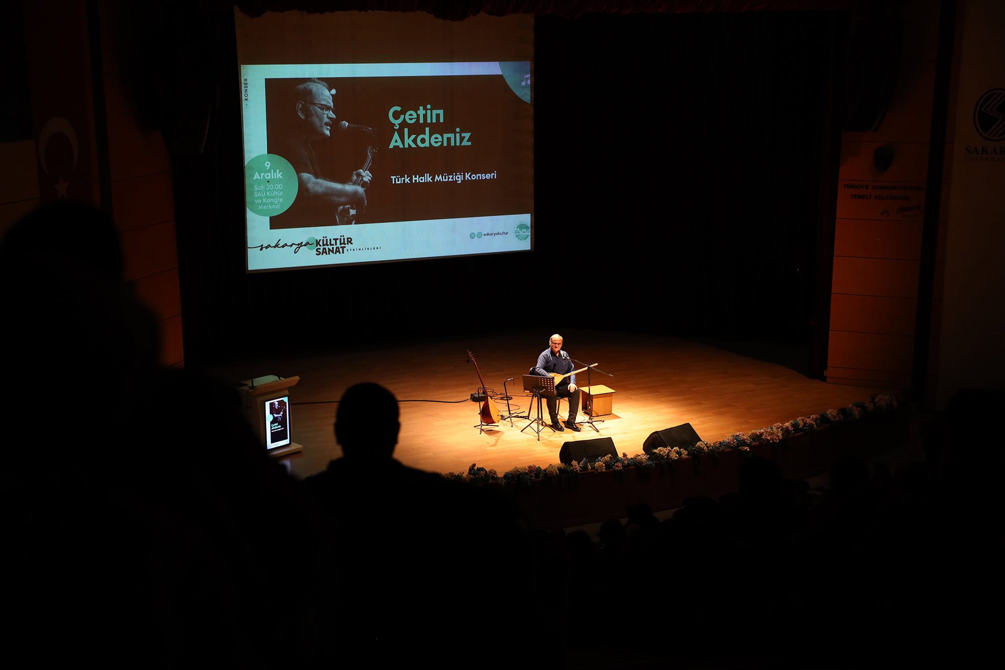 Sakarya Büyükşehir Aralık kültür sanat etkinlikleri kapsamında sahne alan ünlü sanatçı Çetin Akdeniz, sazı ve özgün yorumuyla Sakaryalılara müzik dolu bir gece yaşattı.