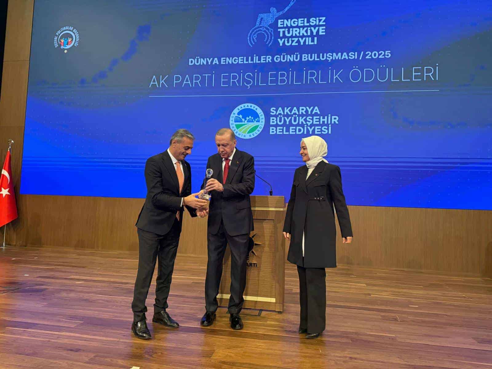 Sakarya Büyükşehir Belediyesi, engelli bireylerin toplu taşımada bağımsız hareket edebilmesini sağlayan “Erişilebilir Ulaşım Destek Sistemi” projesiyle önemli bir ödül kazandı. Cumhurbaşkanı Recep Tayyip Erdoğan’ın katılımıyla Ankara’da düzenlenen “Engelsiz Türkiye Yüzyılı Dünya Engelliler Günü Buluşması” programında, Sakarya Büyükşehir Belediye Başkanı Yusuf Alemdar projeyi temsilen ödülü aldı.