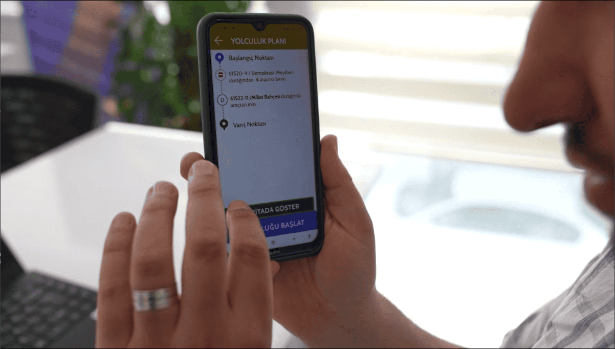 Projede, uygulamayı telefonlarına indiren engelli vatandaşlar ve refakatçileri sesli ve görsel yönlendirme, hat bildirimi ve durak bilgilendirme gibi hizmetlerden yararlanabiliyor. Engelli yolcunun araca bindiği ve hangi durakta ineceği sürücüye anlık olarak iletiliyor. Böylece yolculuk süreci baştan sona planlanabiliyor ve güvenli bir ulaşım deneyimi sunuluyor.