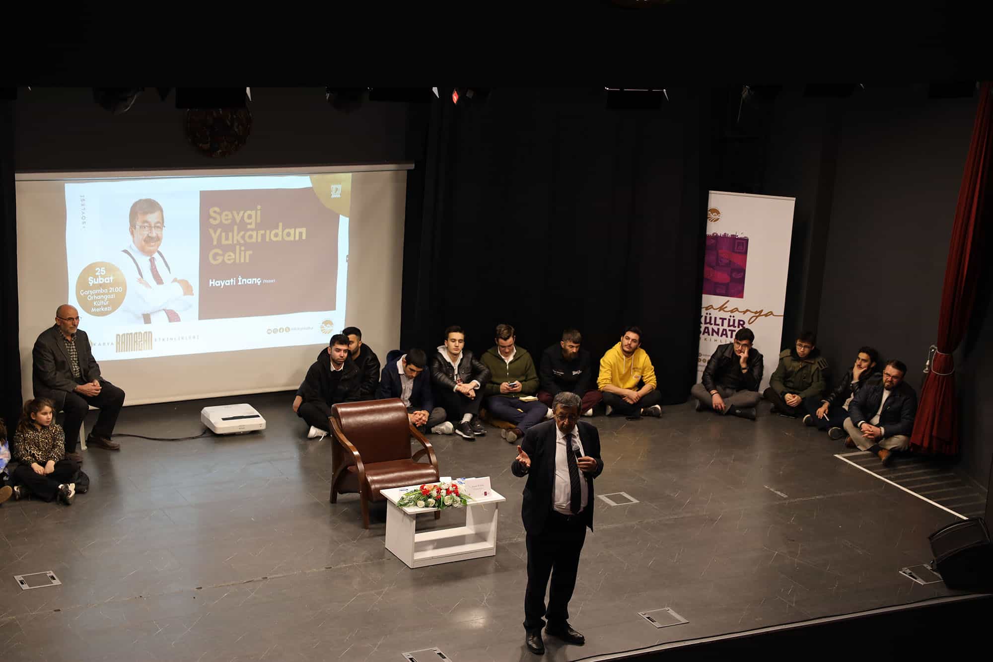 ‘Sevgi Yukarıdan Gelir’ isimli programda klasik Türk edebiyatından şiirler, beyitler ve hikâyeler paylaşan Hayati İnanç, dinleyicilere geçmişten günümüze uzanan bir manevi köprü kurdu. Yoğun katılımın olduğu etkinlikte yazar, kendi yaşamından anekdotlar aktararak Ramazan’ın manevi atmosferi üzerine düşüncelerini dile getirdi.