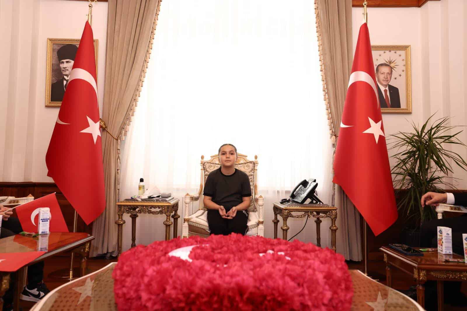 Sakarya’da 23 Nisan Ulusal Egemenlik ve Çocuk Bayramı, ilçede düzenlenen çeşitli etkinliklerle coşkulu şekilde kutlandı. Kutlamalar kapsamında Vali Rahmi Doğan, Merkez Çalışma Ofisindeki makamını Şehit Ahmet Akyol İlkokulu’ndan gelen öğrencilere temsili olarak devretti. Öğrencilerin yönetime katılımı, ilçede bayramın anlam ve önemini güçlendirdi.
