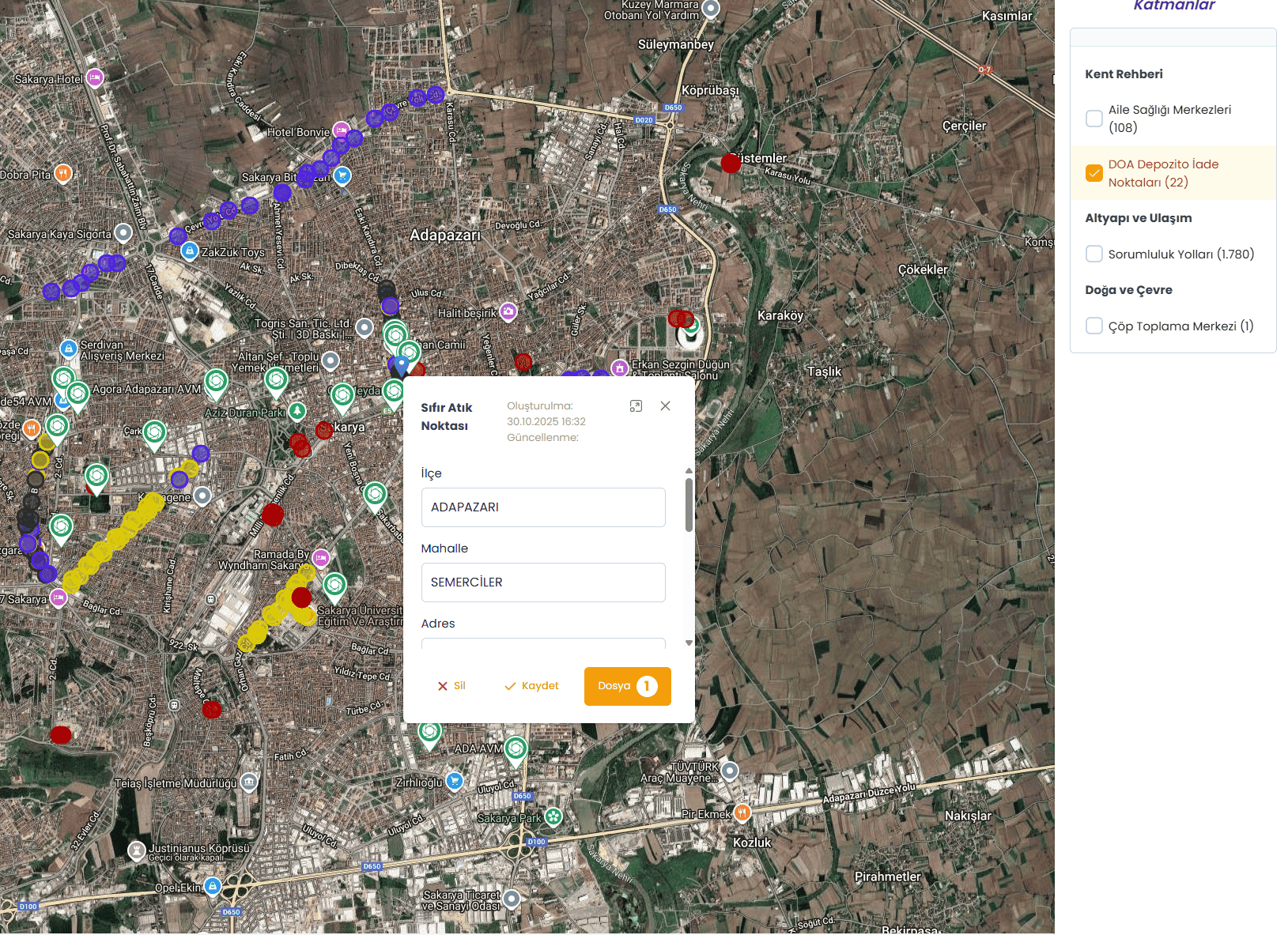 Sakarya Büyükşehir Belediyesi, şehir genelinde atık yönetimi süreçlerini dijitalleştiren yeni bir uygulama geliştirdi. Sıfır Atık Yönetim Uygulaması sayesinde sahadaki sıfır atık faaliyetlerinin, toplama noktalarının ve süreçte yer alan tüm operasyonların dijital yapılacak.