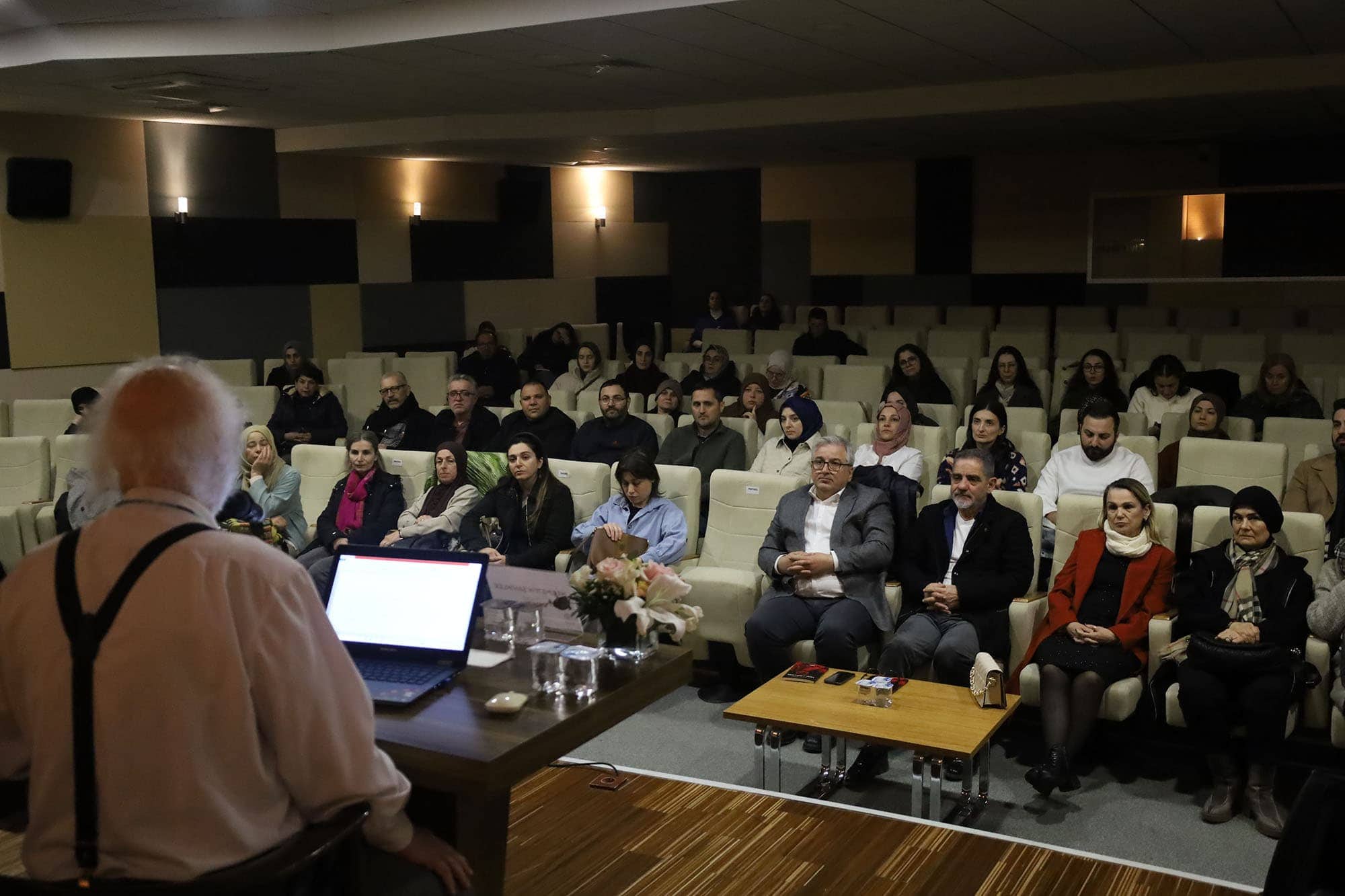 Yazar Necmettin Şahinler’in konuşmacı olarak katıldığı söyleşide, Kültür ve Sosyal İşler Dairesi Başkanı Alpay Şirin de izleyiciler arasında yer aldı. Şahinler, “Ben peygamber mesleği yapıyorum, kumaş işiyle uğraşıyorum” diyerek mesleğine ve peygamberlere dair bir bakış sundu.