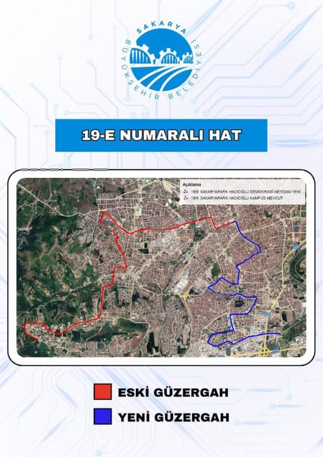 Son olarak “19-K” numaralı Sakarya Park ile Kampüs arasında hizmet veren hatta değişikliğe gidildi. Artık 19-E numarasıyla hizmet verecek yeni hattın güzergahı Sakarya Park ile Demokrasi Meydanı arasında olacak.
