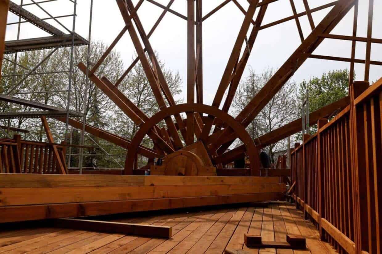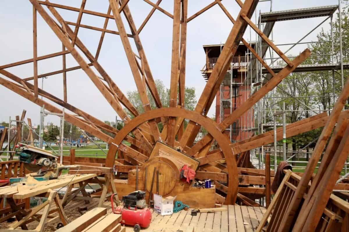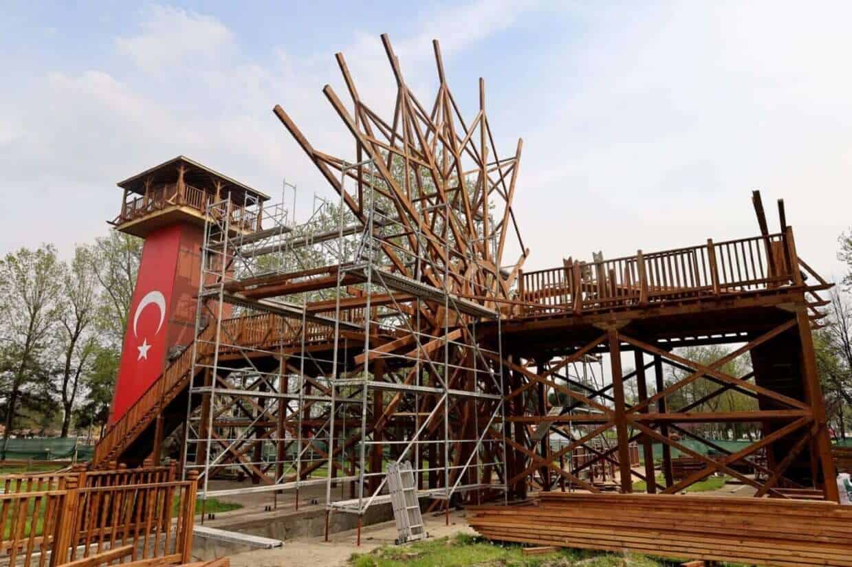 Parkın simgesi haline gelen Tarihi Çarkta, kuledeki ahşap işçilik ve montaj tamamlandı. Şu anda çarkın yeniden oluşturulmasına yönelik işlemler devam ediyor. Dönel mekanizmanın montajı bitirilirken, kollar ve su taşıyan bölümün imalatında son aşamaya gelindi. Uzun süredir kullanılmayan çark, yenileme sonrası tekrar işlevsel hale gelecek ve eski görünümüne kavuşacak.
